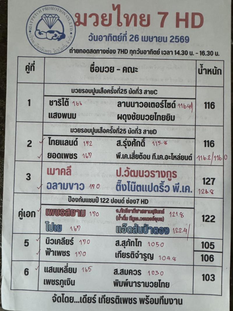 | # ศึกมวยไทย 7 สี 26/04/2569 |