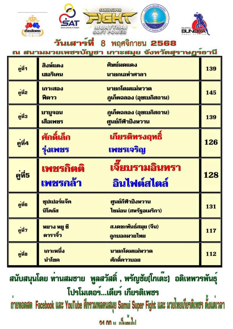 | # ศึกมวยไทยเกียรติเพชร 08/11/2568 |