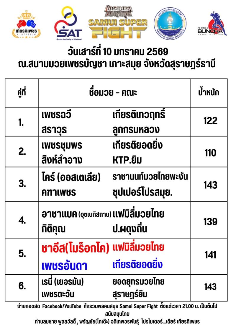 | # ศึกมวยไทยเกียรติเพชร 10/01/2569 |