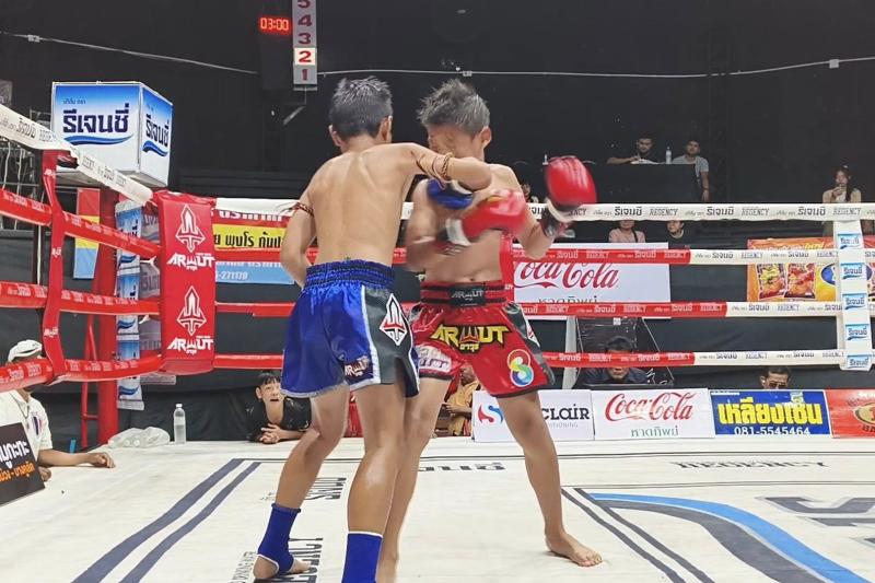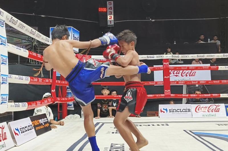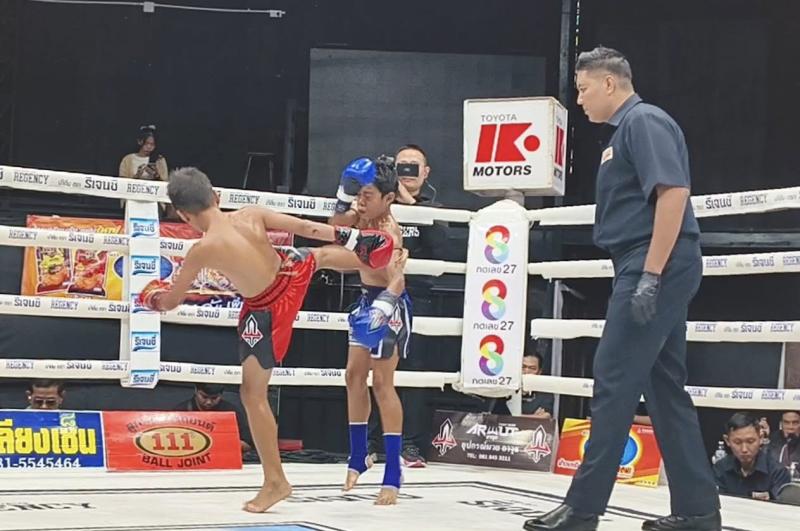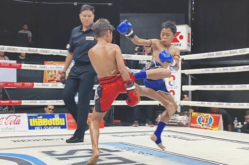 | ก้องมงคล บุ๋มบิ๋มมวยไทย | ชนะน็อกยก 1 | เด่นเชียงรายเล็ก หยกฟ้ามวยไทยยิม |