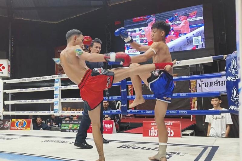 | ก้องมงคล บุ๋มบิ๋มมวยไทย | ชนะน็อกยก 1 | เด่นเชียงรายเล็ก หยกฟ้ามวยไทยยิม |