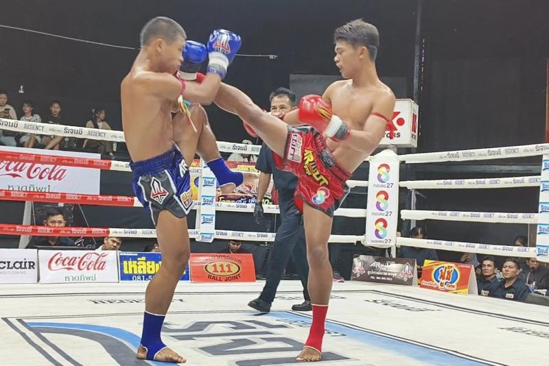 | ก้องมงคล บุ๋มบิ๋มมวยไทย | ชนะน็อกยก 1 | เด่นเชียงรายเล็ก หยกฟ้ามวยไทยยิม |