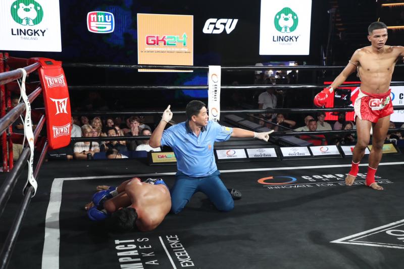 | พฤหัสน้อย ส.สมหมาย | ชนะน็อกยก 3 | หนุ่มชีวาส ไรซิ่งมวยไทย |