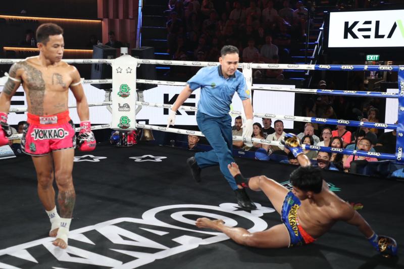 การต่อสู้ มวยบู๊มวยซ้ายเข่าในล็อกรัดตีเหนียวแน่นหมัดหนักเก๋าเกม มวยซ้ายฝีมือครบเครื่องแข้งซ้ายแรง ''พี่ชาย เกียรติศักดิ์ พยัคฆ์กันธร''
